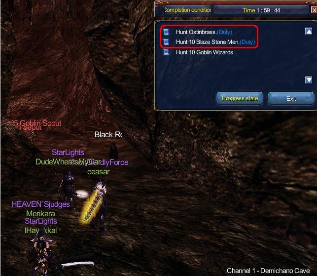 Killing Ostinbrass is your primary duty or the party's primary duty which will reward you or every member of the party with a Cave Box. Kill also 10 Blaze Stone Men and you or the entire party will get additional Gold rewards.